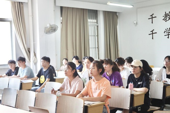 吴兴副书记用详实的数据阐述了中国共产党一百周年的发展进程,从大历史观的角度讲述党的百年历史,在讲课中深化了学生对中国共产党光荣历史的认识,加深了学生对“中国共产党为什么能”“马克思主义为什么行”“中国特色社会主义为什么好”的理解。党课最后,吴兴副书记从四个方面讲出党的理论背后的实践根源、实践基础,并结合具体事件讲党史,深入阐释党的精神谱系,引导学生增强对党的理论的政治认同、思想认同、情感认同。现场,同学们认真专注地聆听,不时进行记录。