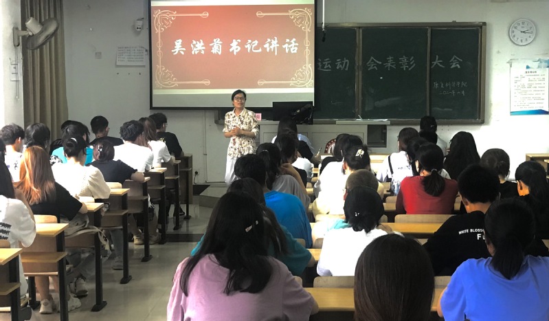 为表彰在校运会上取得优异成绩的运动员。6月3日中午,康复科学学院举办运动会表彰大会,表彰和鼓励在校运动会做出贡献的运动员和“殊博汇”志愿者。学院党总支书记吴洪菊、学工办吴冠磊、辅导员王雪梅出席表彰大会。运动员代表、“殊博汇”志愿者代表及学院学生会全体成员参加。