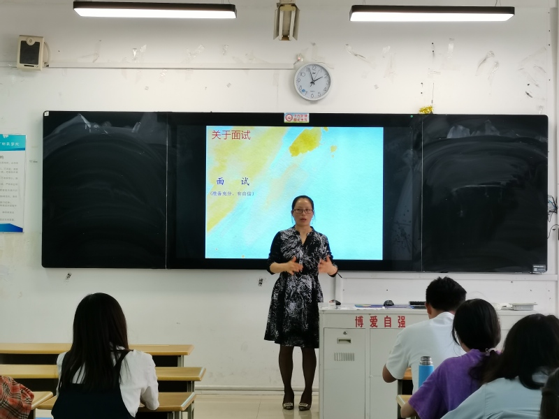 冯轶君老师向大家介绍了大类招生后专业分流的背景及意义。她结合绍兴市聋哑学校的现状为同学们分析了康复专业的就业前景、发展潜力,鼓励同学们积极上进,努力学好专业知识,多多在实践中提升康复技能,多学习他人的经验,树立正确的发展观。在互动交流环节,冯老师也耐心地解答同学们提出的问题。