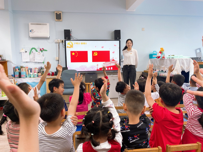 为庆祝中国共产党成立100周年,教育科学学院学生党支部的毕业生党员利用实习机会,以”红色资源”和“红色文化”为背景,于6月7日-6月8日分别在上海、南京和杭州等地为幼儿园小朋友上了一节节生动的党课,用实际行动向党的百年华诞献礼。