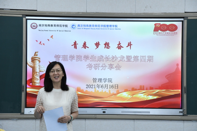 为进一步加强学风建设,引导学生树立合理的考研目标,激发学生的考研热情,营造浓郁的考研氛围。6月16日下午,管理学院特邀管理学院青年教师党员曾红艳、南京信息工程大学研究生徐凯、特殊教育学院的周念琪以及我院公共事业管理专业的王雨菁、池婕、康力心等同学,开展考研经验分享会。会议由管理学院教师党支部书记康丽老师主持,学院院长杨会良教授应邀出席,2018级和2019级同学参加。