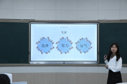 康丽老师介绍了特邀嘉宾以及活动的目的、意义。杨会良院长发表了精彩的致辞,他从考研对于同学们未来发展的重要意义、如何做好未来发展规划、如何进行科学的时间管理以及如何进行有效的复习应考准备等方面提出了宝贵建议。杨院长强调,管理学院会全力支持大家,积极营造有利于同学们成长成才的发展环境,鼓励同学们积极上进、奋勇拼搏,努力成长为有公共精神、博爱情怀和社会责任感的,对国家对社会有用的人。杨院长语重心长的教导,包含着师长对同学们殷切的期待,在场的同学备受感动和鼓舞。