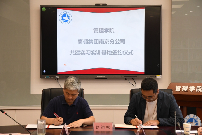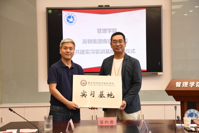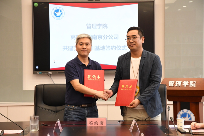 为进一步推进校企合作,落实专业人才培养目标,6月18日下午,管理学院与高顿集团南京分公司举行校外实习基地签约授牌仪式。出席会议的有管理学院党总支书记李固新、院长杨会良、副院长常晓茗、副院长康丽、实习指导老师杨烨,高顿考研南京校长赵松阳、人事经理查金花,高顿公考仙林校长刘蕊,高顿公考南京市场负责人李文涛,高顿公考南京项目主管蒋亦泽出席仪式。会议由管理学院办公室主任彭琳主持。