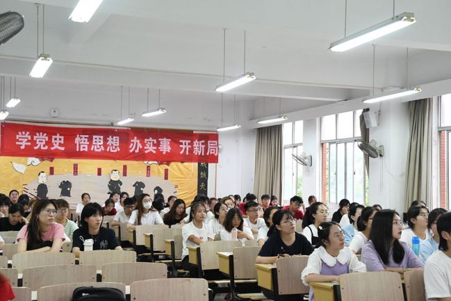 结合视频资料,张金福部长带领学生们领略了中国GDP的变化。张部长指出,中国GDP的攀升趋势,离不开中国共产党的领导。他从“巩固新政权的斗争”“抗美援朝,保家卫国”“过渡时期总路线的提出”“社会主义制度的初步建立”四个板块展开,以一则小故事折射出党一路走来的艰辛与不易,回望百年风云,我们党在内忧外患中诞生、在磨难挫折中成长、在攻坚克难中壮大,带领全国人民不断从胜利走向胜利。张金福部长用生动活泼的语言、精辟入里的讲解全面展现了中国共产党的百年历程和伟大业绩,生动地呈现了我们党始终同人民想在一起、干在一起,永远与人民同呼吸、共命运,凝聚起奋进新时代的磅礴力量。