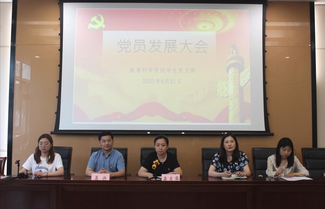 6月21日,教育科学学院学生党支部开展党员发展大会,本次大会由院学生党支部书记汪亮巧主持,党总支书记吴月华、副书记吴兴出席,支部全体成员及入党介绍人参加会议。