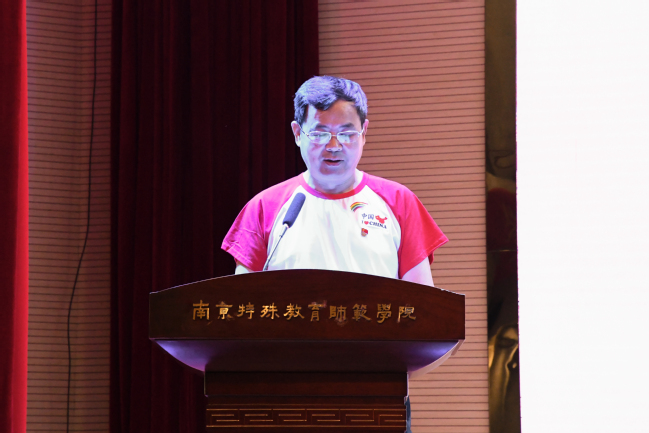 大会第一项议程,全体起立,奏、唱中华人民共和国国歌。李固新书记致辞,对毕业生们今后生活表示祝福,并提出牢记校训、终身学习、懂得宽容的要求,望与同学们共勉。教师代表梁子浪老师以“我曾做过的傻事”为主题讲话,幽默风趣地表达了对毕业生的希望:认识自己,改变自己,在未来不断完善自我,为社会、为国家做出贡献。优秀毕业生代表宓晨辉在发言中,表达了毕业生们对各位老师的感谢,未来的日子中将牢记母校老师们的殷切期望,并牢记“博爱塑魂”的校训,坚定理想信念,积极投身于中国特殊教育与中国残疾人事业的发展。