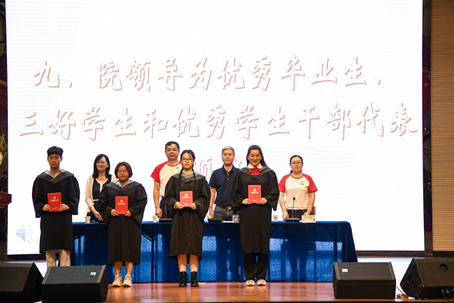 常晓茗副院长、康丽副院长分别宣读了2021届毕业生校内奖学金获奖获得者名单以及优秀毕业生、三好学生和优秀学生干部名单,院领导分别为获奖代表颁发奖状。杨会良院长、李固新书记还为学院“江苏省三好学生”获得者王聪玮、“江苏省优秀毕业生”获得者宓晨辉同学颁奖。