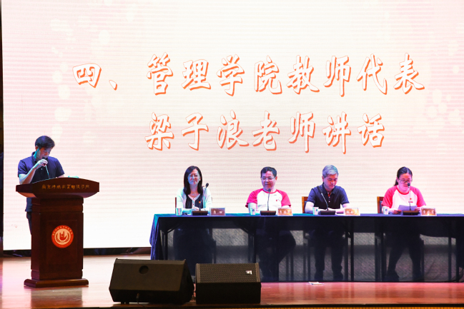 大会最后一项议程,管理学院院长杨会良教授致辞。杨院长在讲话中勉励2021届毕业生珍惜韶华、脚踏实地、志存高远、坚守理想,顺境中居安思危,逆境中坚忍不拔;把远大抱负落实到实际行动中,在激昂青春、奉献社会的进程中书写无愧于时代的壮丽篇章。