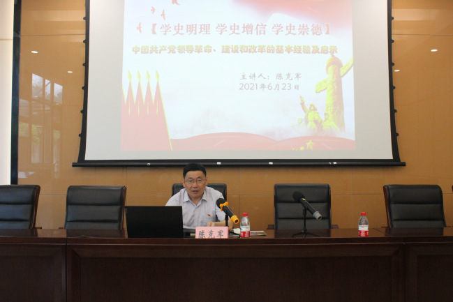 6月23日下午,校党委常委、副校长陈克军为教育科学学院全体师生党员上了一堂题为《中国共产党领导革命、建设和改革的基本经验及启示》的党课。