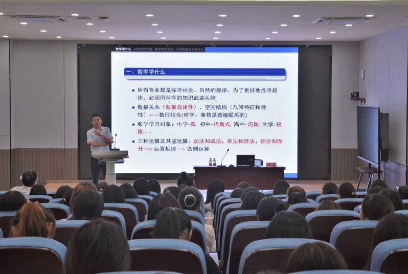 任永教授以“数学学什么”为切入点讲述了不同学习阶段下的数学学习重点;围绕“如何准确把握数学及其学科特点”“数学学习方法”这两个方面,并结合自己多年学习和工作的经历,为同学们详细讲述了数学到知识体系架构,重点阐述了数学学习思维和方法的重要性。任永教授强调,数学要牢固掌握数学的基本概念,善于分析和思考,注重总结与反思。关于数学专业的学习,任永教授提出了三点建议:一是端正学习态度,培养良好的学习习惯;二是注重时间管理,提高学习效率;三是善于总结方法,掌握学科规律。