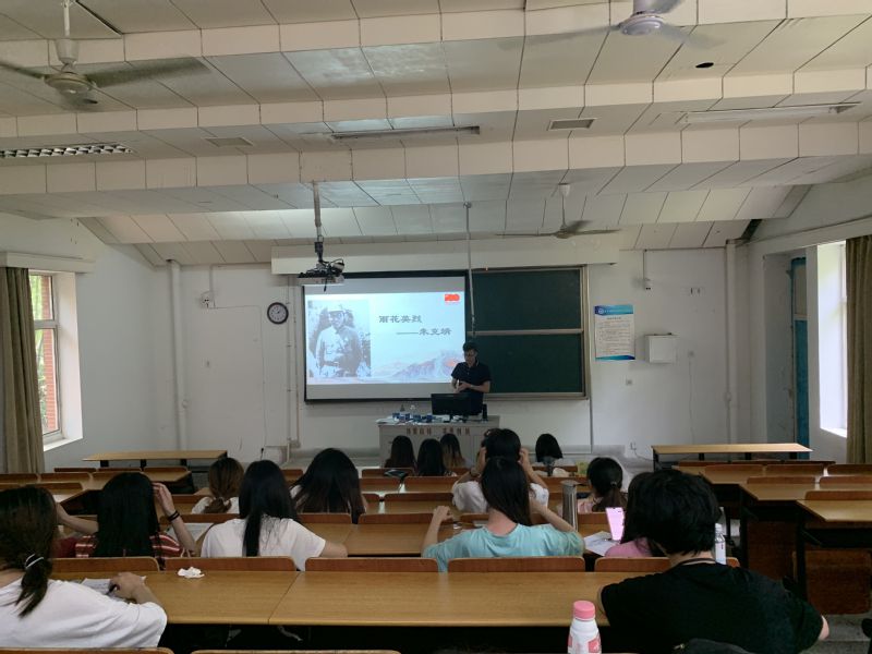 金诚立老师通过讲解“四一二反革命政变”“南昌起义”“广西任教”“拒绝蒋介石三次劝降”等故事片段来让同学了解朱克靖的伟大事迹。通过金诚立老师的简介,同学们了解了朱克靖同志的生平及其一生的光辉事迹与卓越贡献,也深切感受到革命先烈坚定的共产主义信仰与坚忍不拔的顽强意志。金诚立表示,作为当今大学生应该从雨花英烈身上学习到坚贞不屈的伟大精神。