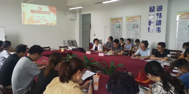 6月30日下午,在庆祝中国共产党成立100周年前夕,校党委常委、副校长兼语言学院院长许巧仙为语言学院教师上了一堂题为“中国共产党的百年历程”的党史学习教育专题党课。党课由党总支副书记丁祖保主持,学院全体教师参加。