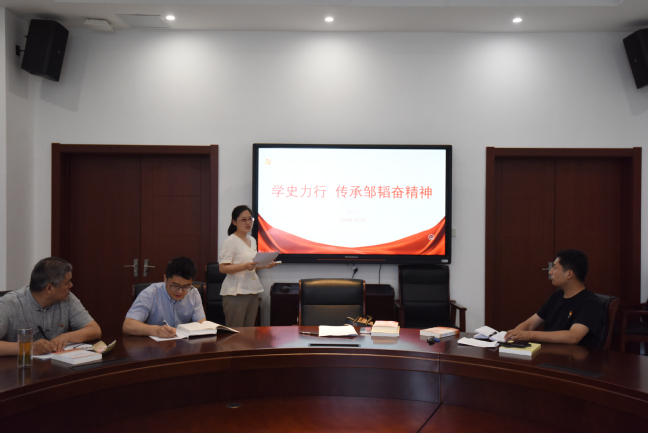 7月5日,机关一党总支第四党支部召开党员大会。党支部书记杨黎珍为全体党员讲授党史学习教育专题党课《学史力行 传承韬奋精神》。