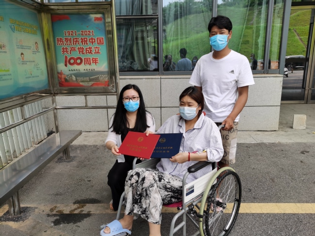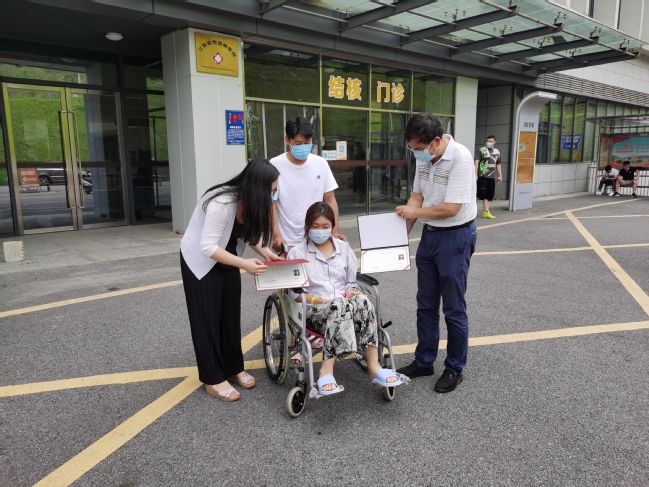 7月16日上午,管理学院在南京市公共卫生医疗中心,为身患重疾的2021届毕业生拉吉举办了一场特殊的毕业典礼。管理学院党总支书记李固新、副院长常晓茗代表学院到场为拉吉颁发毕业证书和学士学位证书。