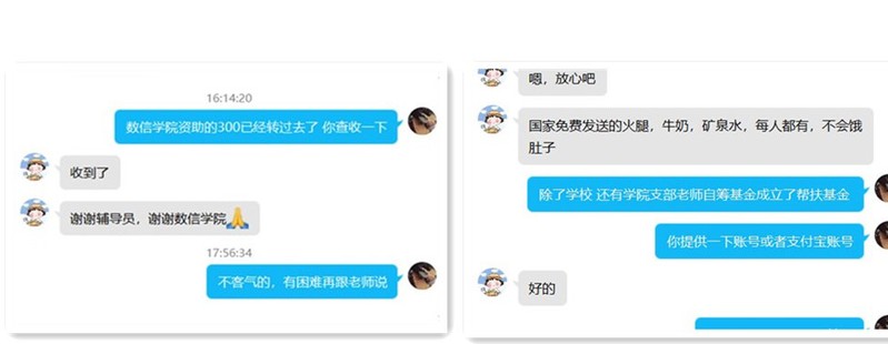 7月17日以来,河南省出现极端强降雨天气,该省多地遭受特大水灾,灾情牵动着全国同胞的心。数学与信息科学学院心系河南受灾地区学子,及时伸出援手,帮助家庭受灾学生共渡难关。