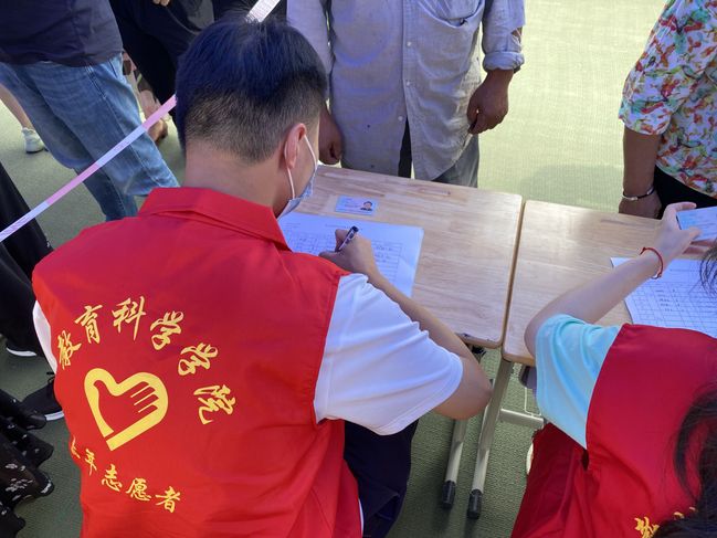 21日清晨,朝阳微露,钱晨新早早抵达了位于南京市浦口区实验学校的防疫站点,迅速按照安排集结到规定点位,和十多个登记帐旁穿着红马甲的志愿者一起忙活了起来。举牌引导排队的居民有序到达指定的点位,详细无误地登记每组十人做核酸检测居民的基本信息,带领已登记的居民前往对应的核酸检测点,安抚排队居民的情绪……钱晨新小心谨慎地对待每一个细节,忘我地投入在工作中。