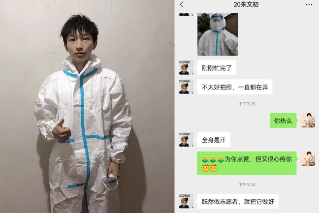 7月26日,天空下起了雨,但这丝毫阻碍不了志愿者们前进的脚步。朱文初早早地抵达了位于南京市江宁区禄口街道的防疫站点,迅速协助了相关医护人员完成了检测秩序维护,候检队伍疏导、候检人员登记、现场咨询解答等工作。一天下来,朱文初始终坚守工作岗位,全程高度配合指挥,坚决执行分派任务,圆满完成志愿服务工作。在疫情肆虐的大环境下,朱文初表示:工作期间不敢有丝毫的怠慢,希望可以通过我自己的努力,来为自己的家乡防疫做出贡献。