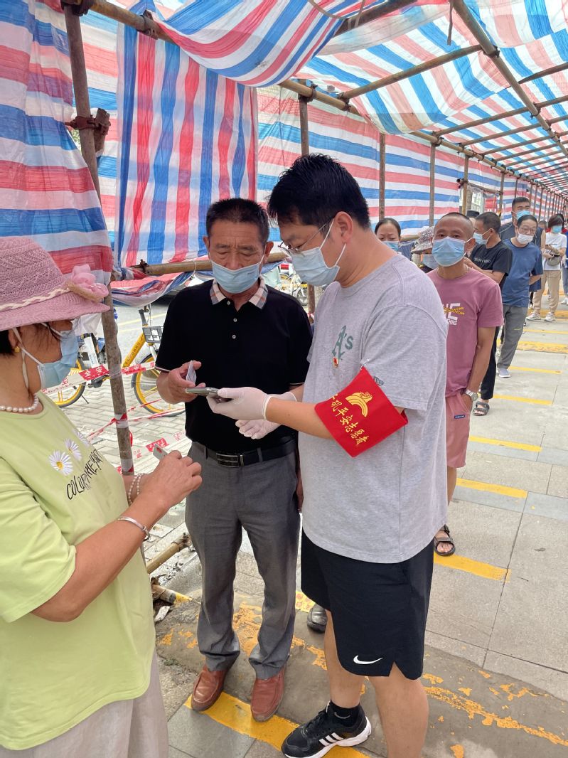 丁宝龙老师视疫情防控为命令,把疫情防控工作与党史学习教育“我为群众办实事”实践活动结合起来。7月29日早上7点多丁老师就抵达栖霞区下庙社区核酸检测点,参与核酸检测防疫志愿工作。他在现场帮助老年人打开“苏康码”、搀扶行动不便的老人。老人们也响应国家号召积极参加核酸检测,但由于不会操作智能手机,子女又不在身边,就需要志愿者们帮助。丁老师还耐心地教老人们如何自己打开“苏康码”,便于以后的出行。