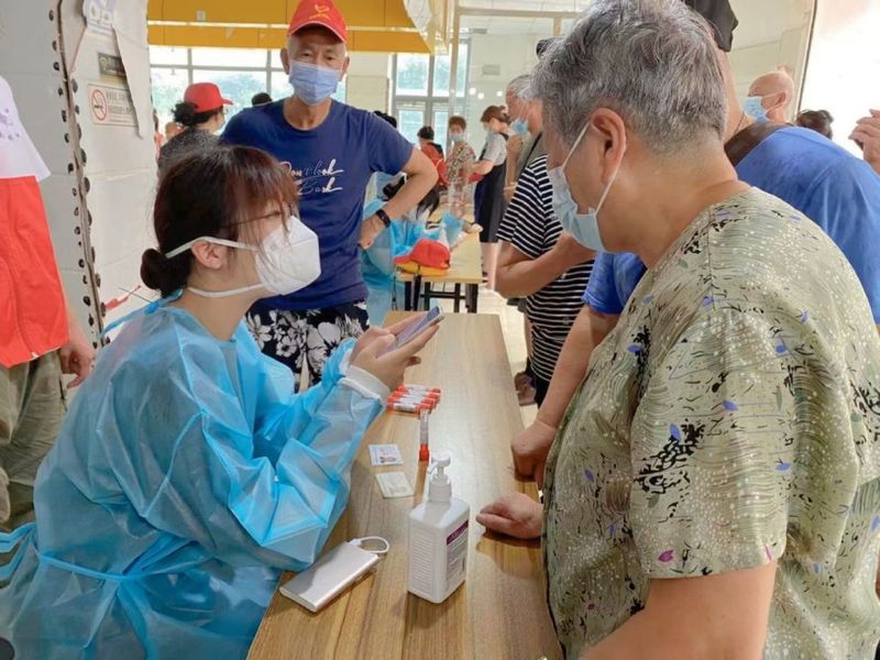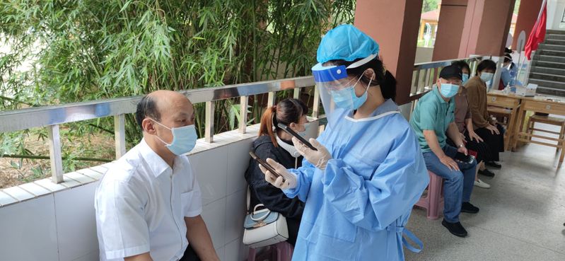 7月25日,廖诗怡被分配到万寿村社区的招商花园城采样点负责人员引导的工作。“大家好,我来核对一下各位的姓名,请按照顺序排队,人齐了,大家跟我走,不要走散。”从早上6点到晚上23点,廖诗怡来来回回地走,一遍一遍地数人数。她说:“我做的工作没什么难度,作为一名大学生,虽然不能像医务人员一样为病人服务,但也要为抗击疫情贡献一份力量。”