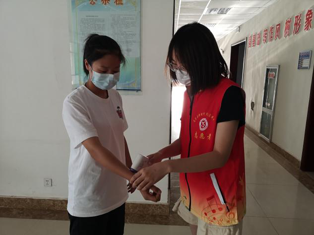 炎炎夏日,全国各地高校的大学生志愿者再一次忙碌在防疫工作的一线。来自我校教育科学学院学前教育专业的周子涵同学,刚放暑假便积极报名成为家乡张掖市高台县的一名防疫志愿者。
