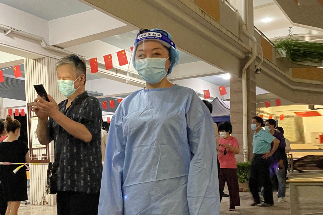 由于天气炎热,再加上当天因电子采集系统崩溃,采样点的手工登记信息较慢,排队较长,面对少部分市民牢骚怨言甚至发脾气,作为志愿者的张老师总是带着微笑迎上前,耐心细致地引导、劝解、安抚,她认为“微笑可以化解‘戾气’‘怨气’,能帮助群众舒缓情绪”,虽然隔着防护面罩和口罩,但她的微笑始终挂在脸上,用微笑传递着爱的力量。从日出到日落,从日落到凌晨,她与无数医务工作人员、社区工作者以及党员志愿者们一起,勠力同心,日夜奋战,协力保障了全民核酸检测工作的顺利进行。