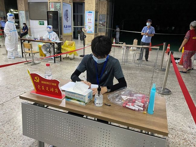 比起七月烈日、大雨的考验,令我们欣慰的是,社区核酸检测的进度一天比一天快,最后时刻,到现场进行核酸检测的人越来越少。为了不产生“漏网之鱼”,我们仔细做好每一个街坊群众的登记工作,避免有人被落下,街坊们纷纷对我们尽职尽责的态度竖起了大拇指,表示将全力配合大规模核酸筛查工作。(文/邓露 曾新洋 图/志愿者)