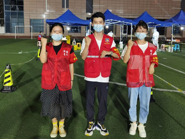 社区核酸检测排队最长时有近百人,大家有数不尽的问题,现场又吵又热。由于这次核酸检测采用的是混检,10人为一组。我们一边引导群众排队的秩序,一边答疑解惑,回答了上千个问题,声音不一会儿就沙哑了。闷热的夏天,身上的衣服湿了一次又一次,但我们不能停,现在我们不仅与“烟花”台风竞赛,还要和疫情抢时间,一刻不停、连续作战,一轮,二轮核酸检测说的最多的话就是:“再来十个,十个人!”不知道帮助社区多少人完成了核酸检测。只记得任务结束那一刻,每个人都筋疲力竭,但每个人都很有成就感。