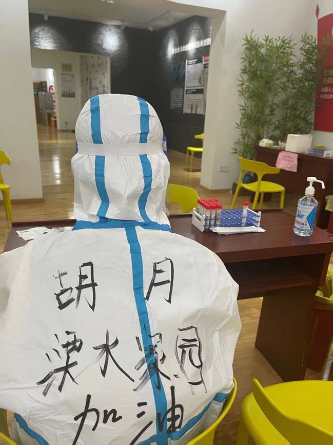 在战“疫”打响那一刻,语言学院2004班的胡月便第一时间报名参加南京溧水片区的志愿者。在接下来的几轮全民核酸里,她完全“沉”在战“疫”一线。炎炎夏日,身上的防护服闷热不透气,除了鞋子,汗水在身上湿了又干,干了又湿,护目镜上全是雾气。双手因为被防护手套里蒸发的汗水长时间浸泡而发白肿胀。但她觉得脸上的勒痕,泡皱的双手,都是他们最美的勋章。胡月说,当她亲眼看见政府与医护工作人员的兢兢业业,才切实感受到,没有谁是天生的“超级英雄”,只有一群挺身而出的平凡人戮力前行。她也逐渐在志愿活动中领悟了“疫情无情,人间有情”的真正含义,我们隔离的是病毒,但并不隔离爱。截至八月中旬,胡月在南京疫情防控中累计志愿时长达到100+小时。“非常时期参加志愿服务,也让我的青春留下时代印记。”她说在大多数人眼中,“00后”或许还只是孩子,但像我们这样活跃在抗疫一线的00后,还有很多很多。他们用实际行动证明,“我们长大了,可以撑起一片天。”