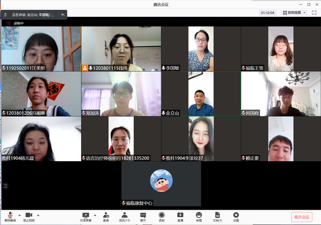 为保障在线课程教学质量,实践团队志愿者暑假加班加点,深入了解特殊儿童学习特点,认真准备课件,梳理教学重点难点,精心制作教学道具,录制辅助教学视频。此外,团队还邀请连云港福临康复医院3位专家多次参与前期课程设计、线上试讲、主题研讨等环节。在课程试讲过程中,连云港福临康复医院金立山校长、王雪老师、徐明月老师全程参与,并对同学们的教学内容和试讲过程耐心点评,针对特殊儿童的身心特点,提出大量宝贵建议。