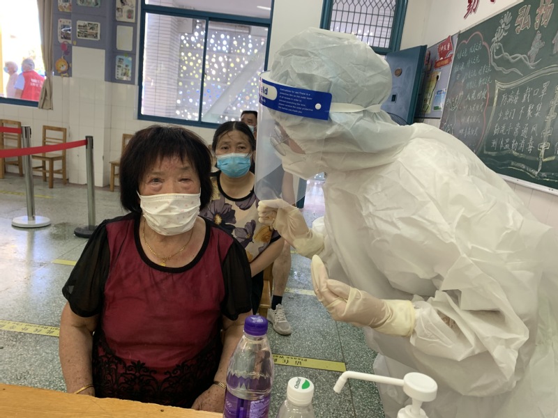 8月4日—6日,陈琦跟随盐城市残疾人联合会党员志愿服务队来到田家炳小学检测点,深入核酸检测一线为群众服务。