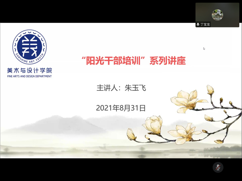 为提高学生干部的政治素养和工作能力,美术与设计学院于8月31日晚20时开展“阳光干部培训”线上系列讲座,学生工作处副处长朱玉飞老师担任主讲人。美术与设计学院党总支副书记丁宝龙主持讲座,该院全体学生干部及部分2021级新生参与此次讲座。