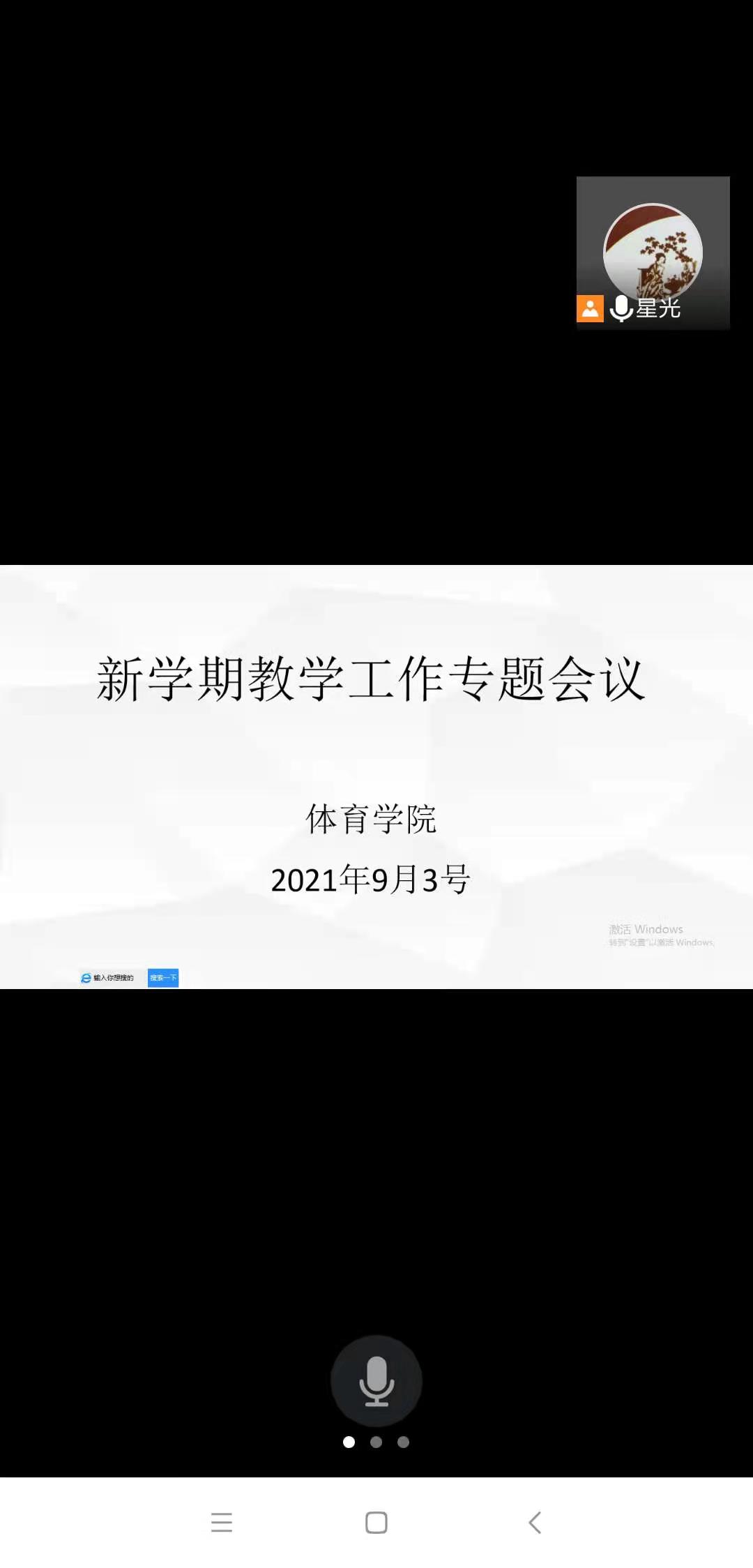 9月4日下午,体育学院通过线上腾讯会议形式召开了新学期教学工作专题会议,部署新学期开学相关教学工作。全体教师以及外聘教师参加了本次会议。会议由教学副院长仝伟主持。