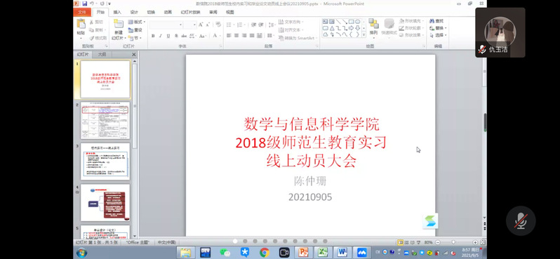 在疫情防控新形势下,为扎实推进2018级各专业实习工作,9月5日、6日,数学与信息科学学院分别组织召开2018级教育技术学和数学与应用数学专业、计算机科学与技术专业“云实习”动员大会。