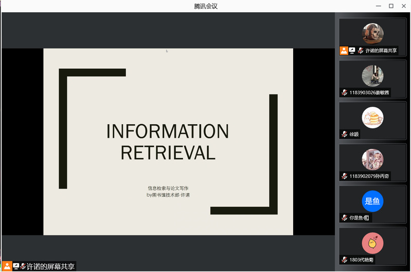 许诺老师首先介绍了一篇论文的诞生所需的流程,从选题、资料收集阅读和整理、写作、提交四个方向开展了讲座。在选题方面,许诺老师向同学们介绍了图书馆万方选题系统,帮助同学从专业前沿进行选题。许老师就资料收集向同学们介绍了图书馆搜索引擎和发现系统,并且向同学们介绍了电子书和期刊中论文资料的区别,此外许老师向同学们推荐了一些论文搜索网站,帮助学生更广泛、更简便地进行论文所需资料的收集和下载。同时,许诺老师向同学们介绍了文献阅读的方法,以更高效地获得、处理信息。在文献整理方面,许诺老师向同学们分享了简单归档、记录的方法,并且推荐了部分实用的整理工具,向同学们强调了内容的原创性。此外,许诺老师解答了同学们在现阶段毕业论文方面的疑问。