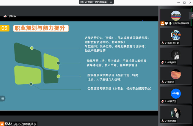 受疫情防控影响,今年2021级新生通过云开学云报道开启了大学生活,为加深新生对学院的全面了解,增强新生的归属感,教育科学学院于9月10日通过腾讯会议召开了一场别开生面的见面会暨新生教育大会。本次会议由2021级新生辅导员汪亮巧老师主持,辅导员余宛琳老师、各班班主任以及全体2021级新生参加会议。