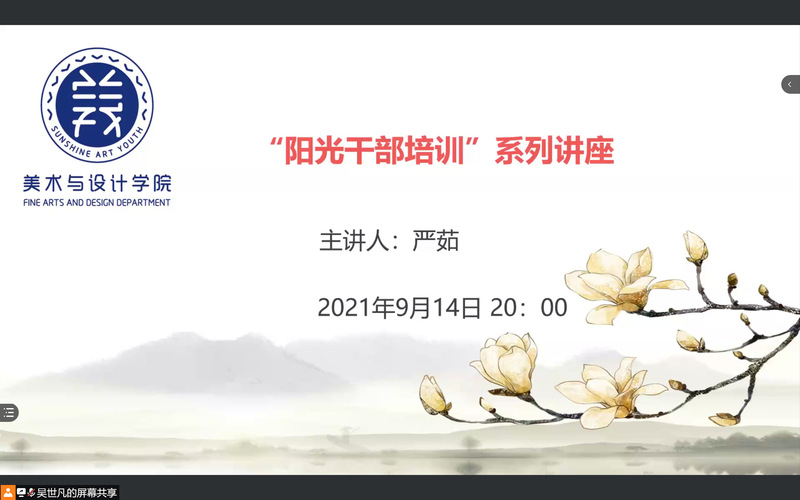 为了更好地提升同学们的情绪管理能力,美术与设计学院于9月14日晚邀请学工处大学生心理健康教育中心严茹老师为“阳光干部培训”作专题讲座。讲座由朱思思老师主持,美术与设计学院全体学生干部及21级新生聆听此次讲座。