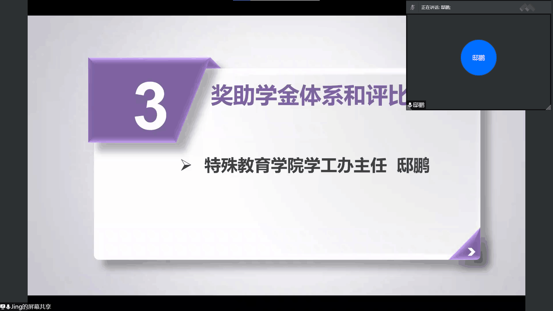 为增进新生对校史院情的了解,帮助新生尽快适应大学学习生活,特殊教育学院于9月15日下午召开了2021级新生线上见面会。学院党总支副书记李鹏、学工办负责人、新生年级辅导员、各班副班主任及2021级全体新生参加会议。本次新生线上见面会由辅导员李欣璟老师主持。
