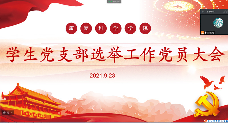 9月23日,康复科学学院学生党支部全体党员大会暨换届选举会议在线上举行,支部全体党员参会。