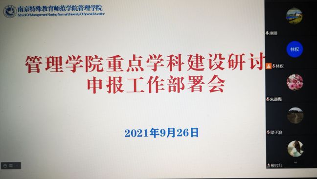 会议学习了《关于组织申报“十四五”校级重点学科的通知》的文件精神。接着,院长杨会良、副院长康丽分别围绕学院重点学科建设工作的实际情况,对此次申报工作的思路和总体规划进行了详细部署。