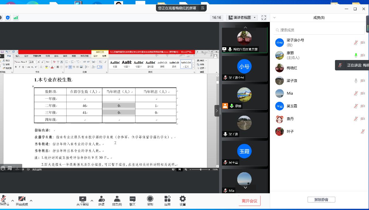 康副院长作会议总结,她一方面要求相关项目填报的责任教师,要根据学院统一部署,进一步深入理解指标内涵,进一步补充、完善现有数据,并确保填报数据的准确性和规范性;另一方面她表示学院会全力支持新设本科专业建设,希望大家准时完成状态数据填报工作。