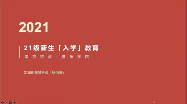 入学教育是新生大学生涯的第一课,是帮助新生适应学校教育与管理模式、养成良好学习习惯、科学规划大学学习生涯与职业生涯的保证。为帮助新生快速找准定位,做好大学生活准备,音乐与舞蹈学院于10月17日线上召开了2021级新生入学教育会议。参加本次会议的有音乐与舞蹈学院21级新生辅导员刘振元、杨雨星和2021级全体学生,会议由刘振元老师主持。