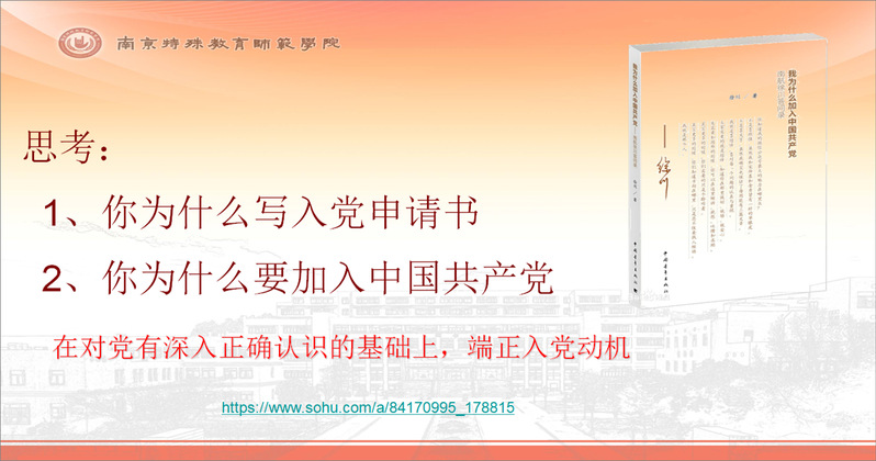 黄珏副书记首先对2021级新同学的到来表示欢迎,并详尽地向同学们介绍了学校环境与办学理念,与同学们分享了南京特殊教育师范学院作为“全国首设唯一”的特殊教育大学独有的文化气质和同学们身为“特师学子”的使命担当。黄珏副书记以学院优秀毕业生的先进典型事例分享,鼓励同学们在大学期间奋发进取,积极向党组织靠拢,争做新时代新青年,让自己的青春之花在南京特师和特教岗位上尽情绽放。徐慧娟老师向同学们介绍了组织发展的流程和提交入党申请书的要求等。