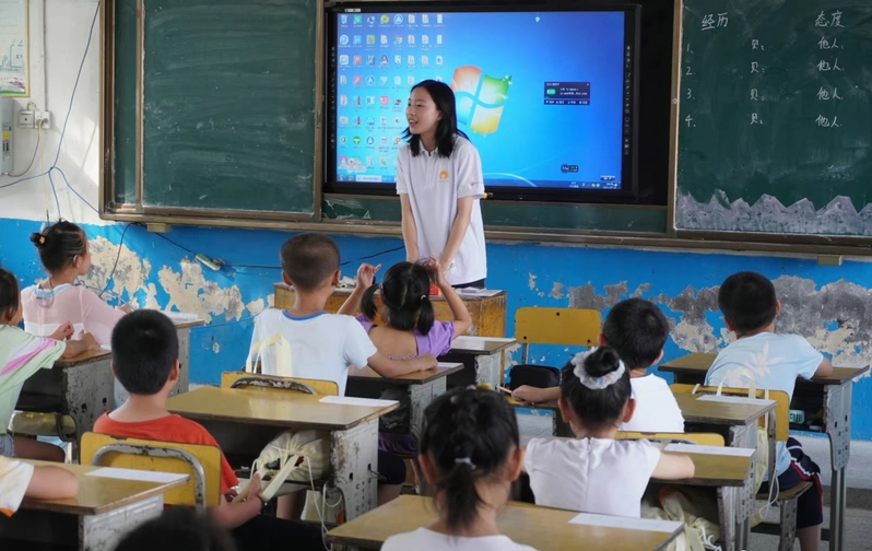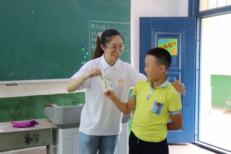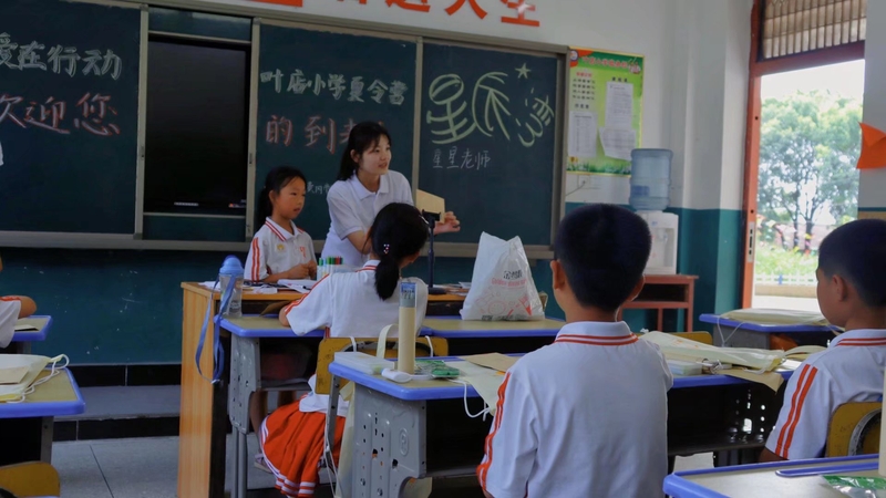 在“融爱在行动”活动中,陈琦同学来到湖北省黄冈市麻城市宋埠镇叶店小学开展支教项目。