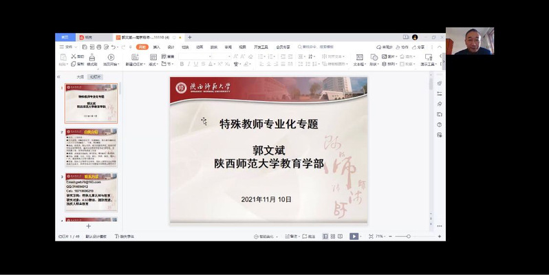 11月10日下午,特殊教育学院开启了新一轮的学术讲座系列活动。本周邀请了三位国内相关领域资深专家分别面向特殊教育系、小学教育系、手语翻译系师生开展了线上讲座,讲座分别由陈琳、赵文超、韩梅三位系主任主持。