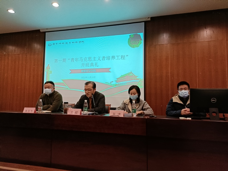 为坚持立德树人,做好青年学生思想引领工作,康复科学学院院于11月10日晚,举办第一期“青年马克思主义者培养工程”开班典礼。校团委书记王超,学生工作处副处长朱玉飞,康复科学学院党总支副书记吴填、团总支书记(学工办主任)吴冠磊、辅导员孔迪、王国庆老师,康复科学学院学生会全体学生干部、各班班长、团支书参加了开班典礼。吴填副书记主持本次开班典礼。