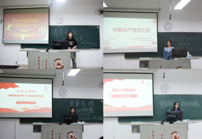 此次宣讲活动共分为《于无声处听惊雷——走进真实的1921》《中国共产党在江苏》《长津湖:致敬先烈,吾辈自强》和《我的入党申请书》四个部分,宣讲人由学生党员、学生入党积极分子组成。此次宣讲活动旨在号召学生党员践行“两在两同”建新功行动,发挥先锋作用、树立先锋形象,从党的百年伟大奋斗历程中汲取继续前进的智慧和力量,推动党史学习教育往深里走、往心里走、往实里走,帮助2021级新生更全面更深刻地了解中国共产党的奋斗历程,积极向党组织靠拢。