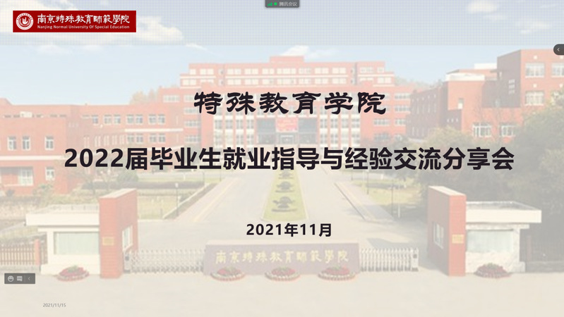 为扎实做好2022届本科毕业生就业工作, 11月11日晚上,特殊教育学院举办2022届毕业生就业指导线上会议。学院党总支副书记李鹏、学工办副主任元志立、毕业班辅导员王赫煊、全体毕业生、2021届优秀毕业生代表参会,会议由王赫煊主持。