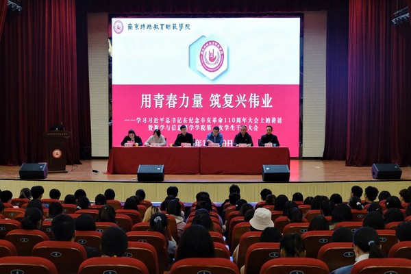 学生党员刘露露带领大家学习了习近平总书记在纪念辛亥革命110周年大会上的重要讲话精神。习近平总书记在讲话中指出“辛亥革命永远是中华民族伟大复兴征程上一座巍然屹立的里程碑!”。历史已经并将继续证明,中国共产党人是孙中山先生革命事业最坚定的支持者、最忠诚的合作者、最忠实的继承者。刘露露通过学习习近平总书记重要讲话精神并结合自身实际,呼吁学生干部严格要求自己,做好模范带头作用。