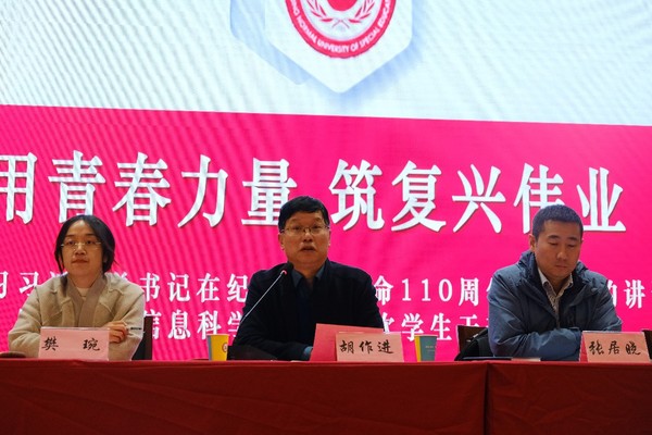 11月10日下午,数学与信息科学学院在校召开学习习近平总书记在纪念辛亥革命110周年大会上的重要讲话精神专题学习会暨数学与信息科信学院学生干部大会,会议以“用青春力量,筑复兴伟业”为主题,院长胡作进、副院长张居晓、全体辅导员、学生党员及学生干部出席本次会议,会议由学生党支部书记樊琬主持。
