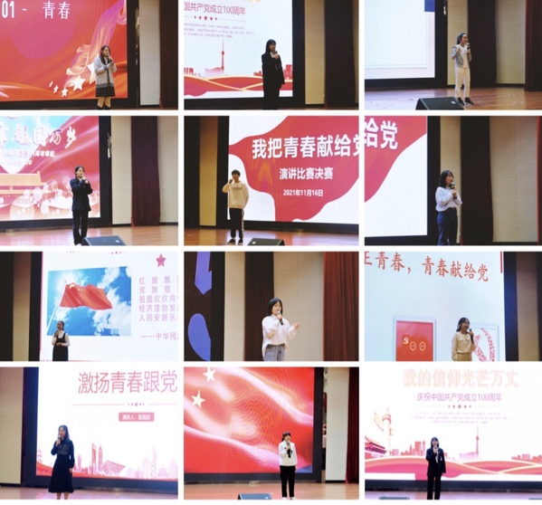 自比赛开始以来,学院21级学生积极参与。经前期选拔和推荐,共有12名同学进入决赛。比赛现场,12名选手根据抽签顺序,围绕中国共产党百年辉煌历史主题主线,深情讲述了致敬英雄模范、感悟信仰力量、传承红色基因的动人故事。他们将党史学习教育同自身实际相结合,坚定理想信念,以豪迈的激情呐喊出一声声“请党放心,强国有我!”。比赛现场高潮不断,亮点纷呈;现场观众心潮澎湃,感受到深切的情感共鸣。